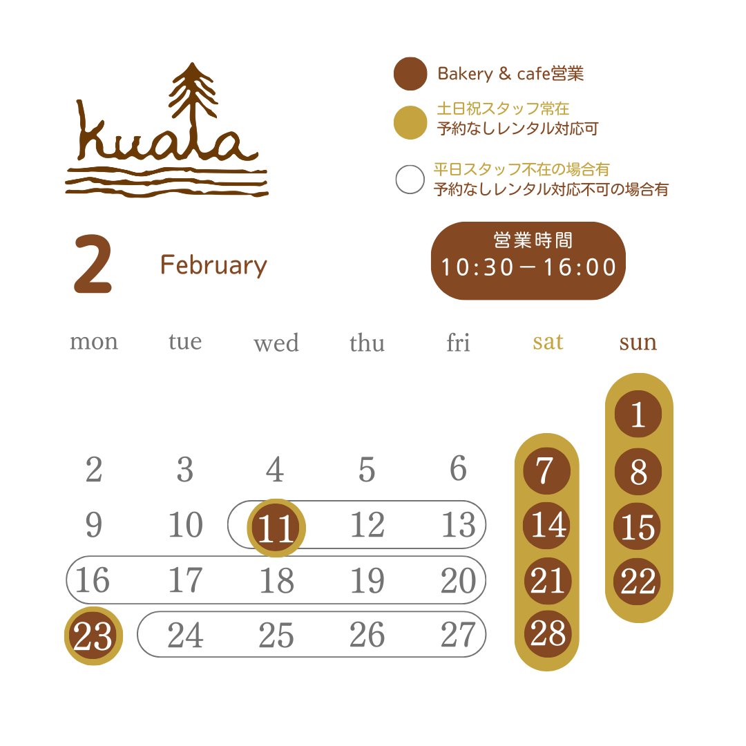 - お知らせ「2026年2月の営業日・臨時休業日」