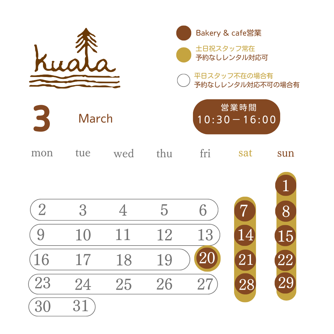 - お知らせ「2026年3月の営業日・臨時休業日」